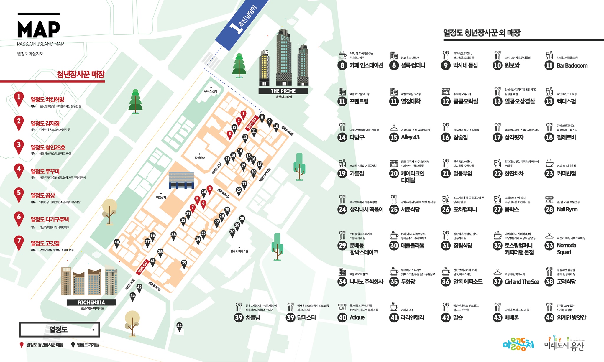 날렵하고 늘씬한 빌딩들이 자리하고 있는 주변과 달리, 유달리 키가 작은 건물들이 줄지어 있으니 빌딩에 둘러싸인 섬 같다. 젊은 청년들의 열정이 모여 있는 섬. 용산구 '열정도' 먹자골목으로 가보자!
